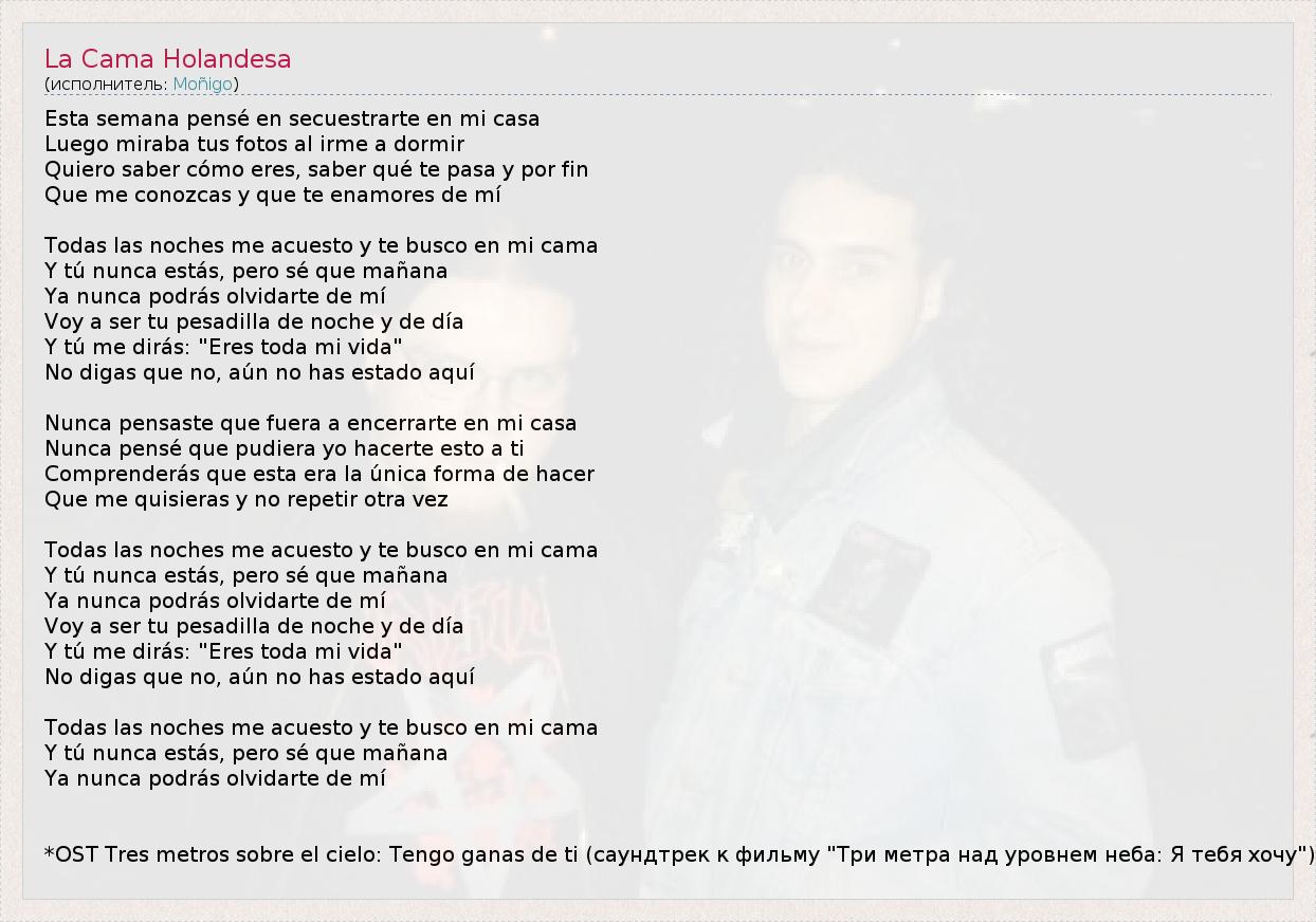 А как ты думаешь, о чем песня "La Cama Holandesa" ?