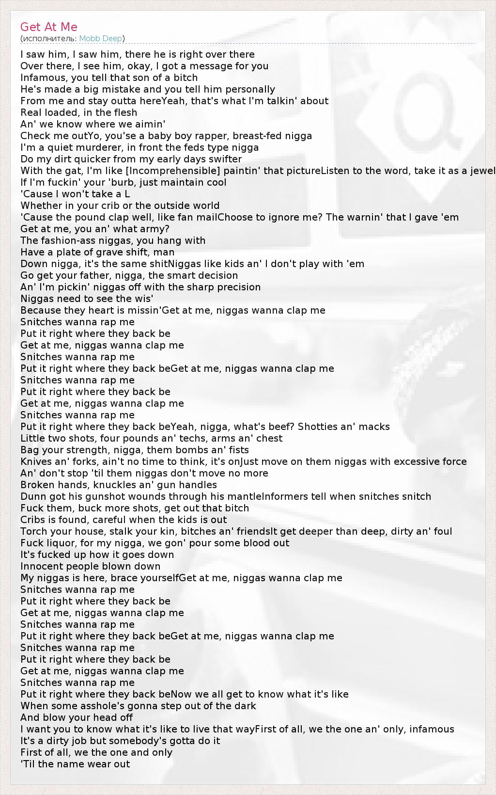 Это интересно:Mobb Deep (чит. Моб Дип) - музыкальный дуэт из Нью-Йорка, района Квинс. Группа состоит из двух участников - Хавока (Havoc) и Продиджи (Prodigy). Стиль дуэта - хардкор рэп. После того, как Mobb Deep выпустили свой второй альбом "The Infamous", о них узнали многие. Их сингл Shook Ones Pt. 2 словно взрывал все чарты. Сейчас парни в разгаре сил, и в ноябре 2011 года они выпустили "Black... продолжение