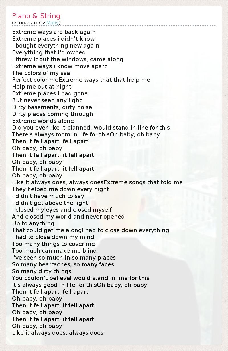 Extreme ways i know move apart