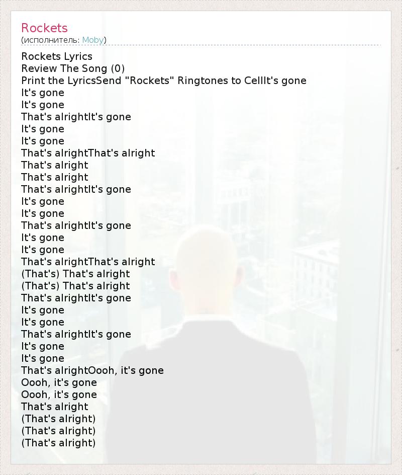 Print the LyricsSend "Rockets" Ringtones to CellIt's gone