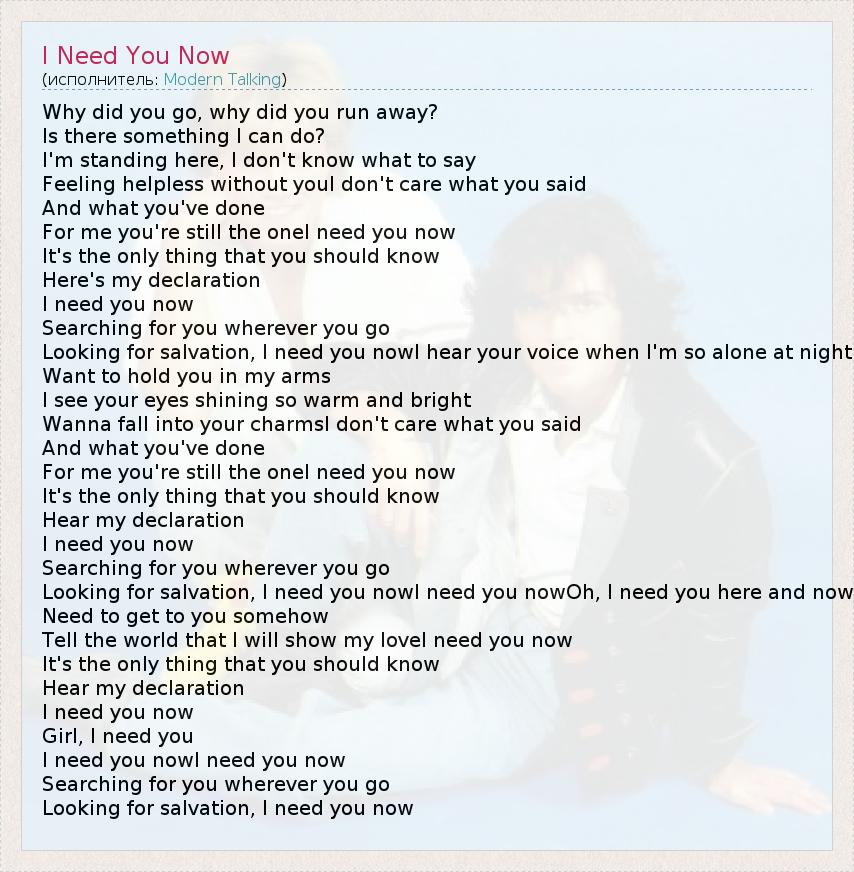 А как ты думаешь, о чем песня "I Need You Now" ?