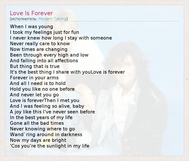 А как ты думаешь, о чем песня "Love Is Forever" ?