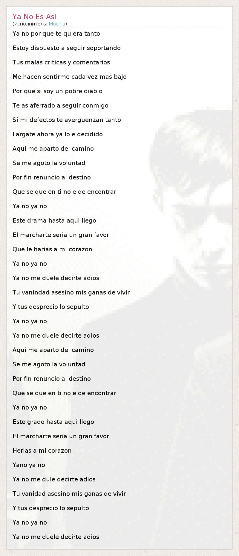 А как ты думаешь, о чем песня "Ya No Es Asi" ?
