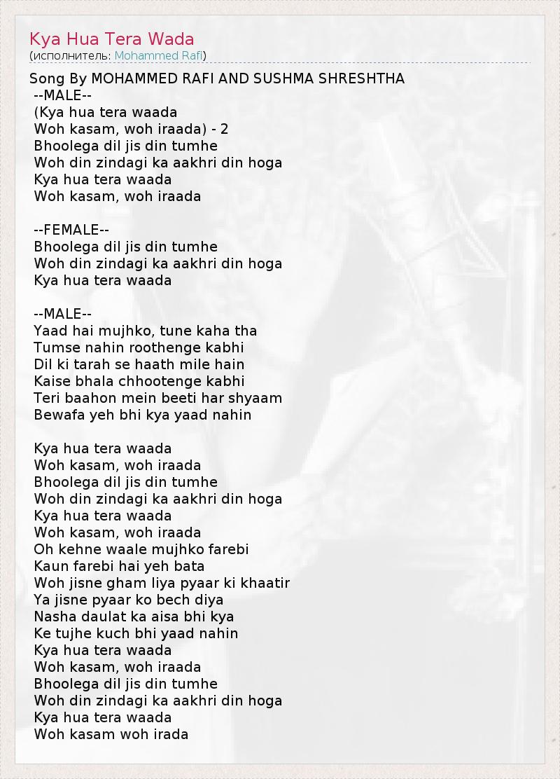 А как ты думаешь, о чем песня "Kya Hua Tera Wada" ?