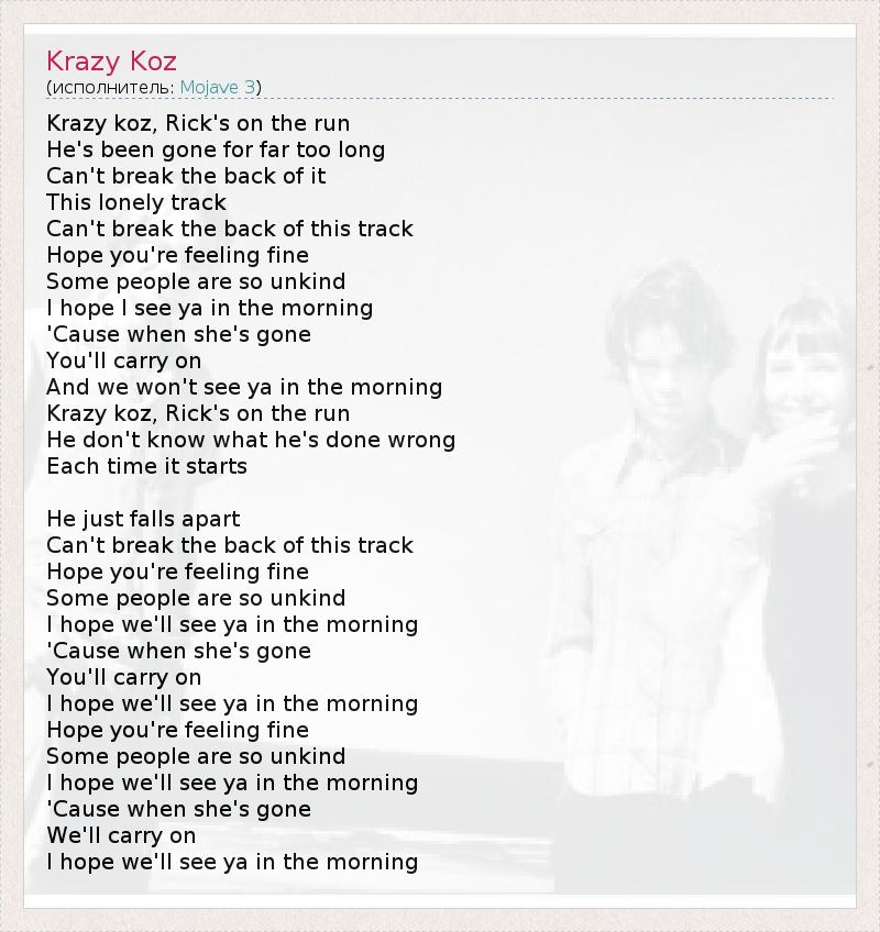 А как ты думаешь, о чем песня "Krazy Koz" ?