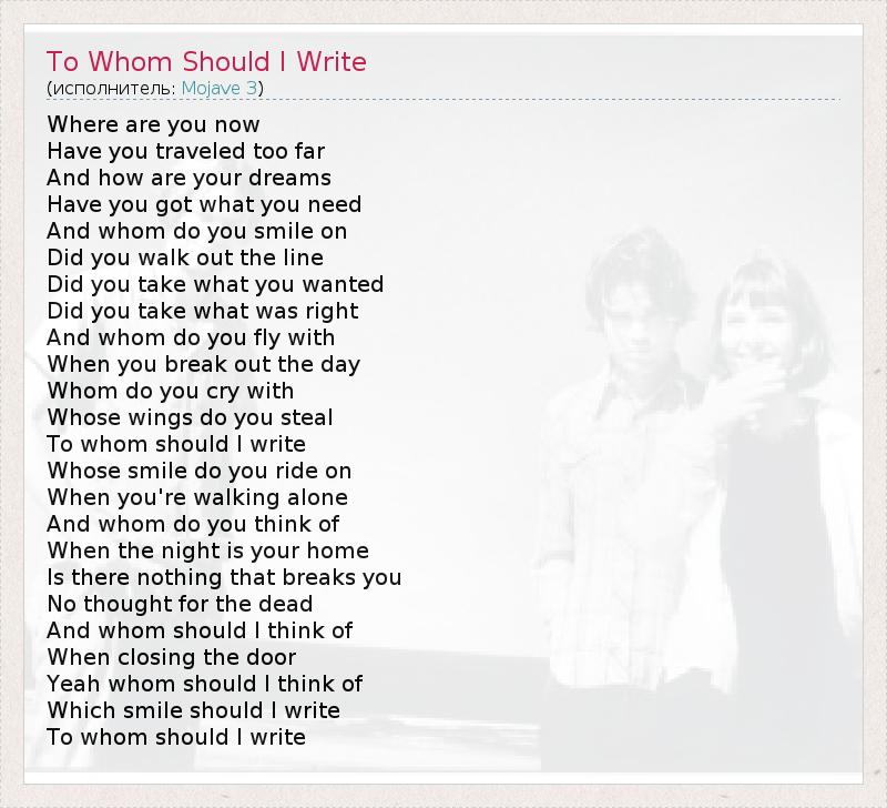 ГлавнаяИсполнителиMojave 3To Whom Should I Write
