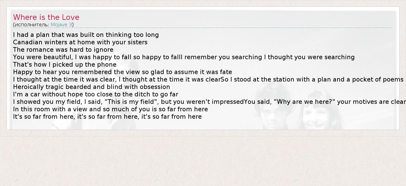 А как ты думаешь, о чем песня "Where is the Love" ?