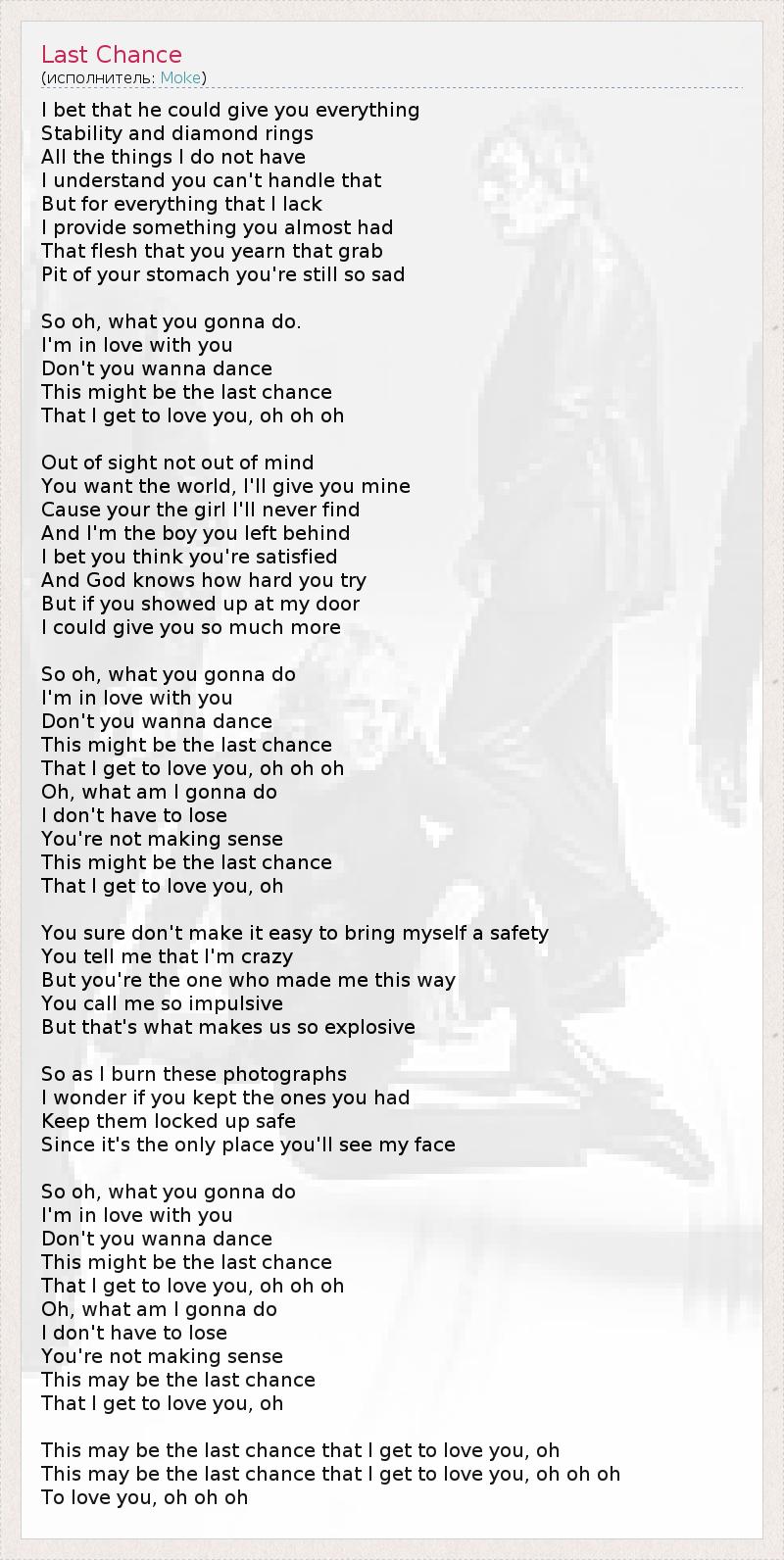 А как ты думаешь, о чем песня "Last Chance" ?