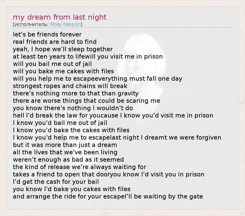 ГлавнаяИсполнителиMolly Nilssonmy dream from last night