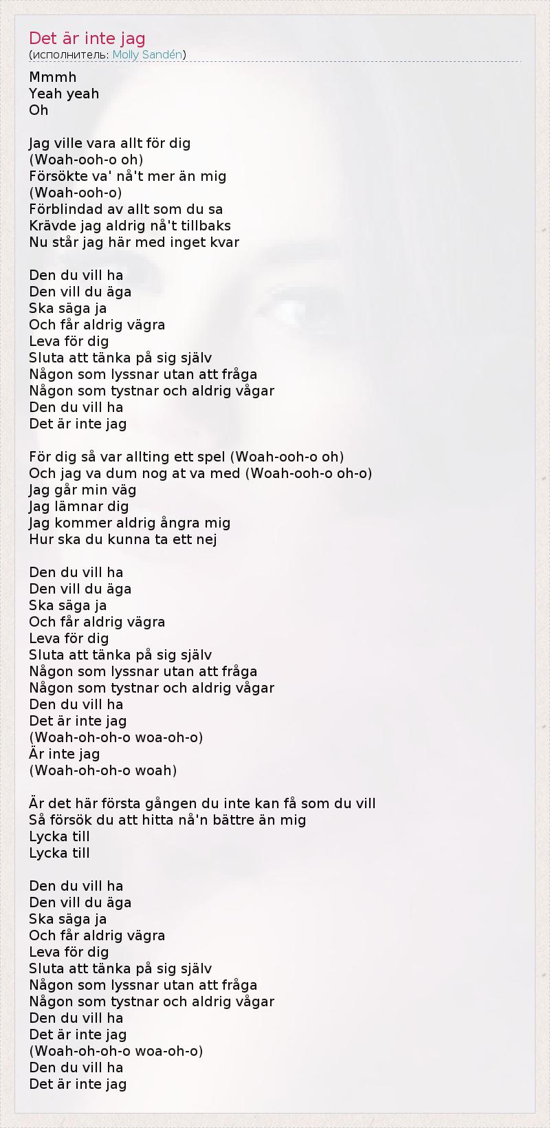 А как ты думаешь, о чем песня "Det är inte jag" ?