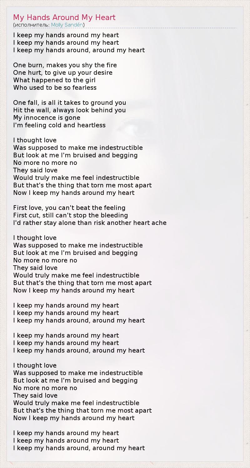 А как ты думаешь, о чем песня "My Hands Around My Heart" ?