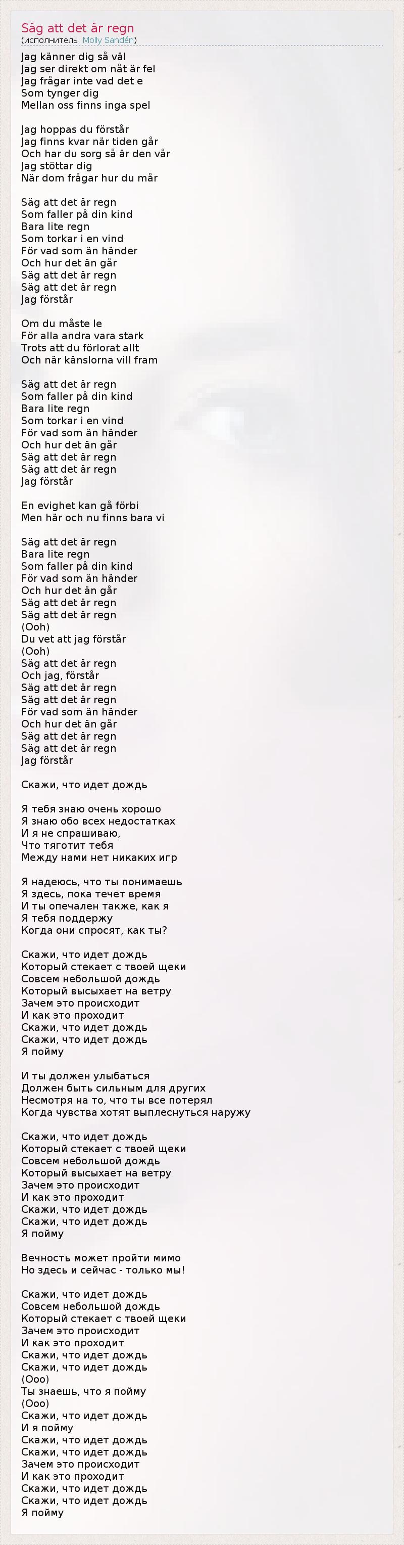 А как ты думаешь, о чем песня "Säg att det är regn" ?