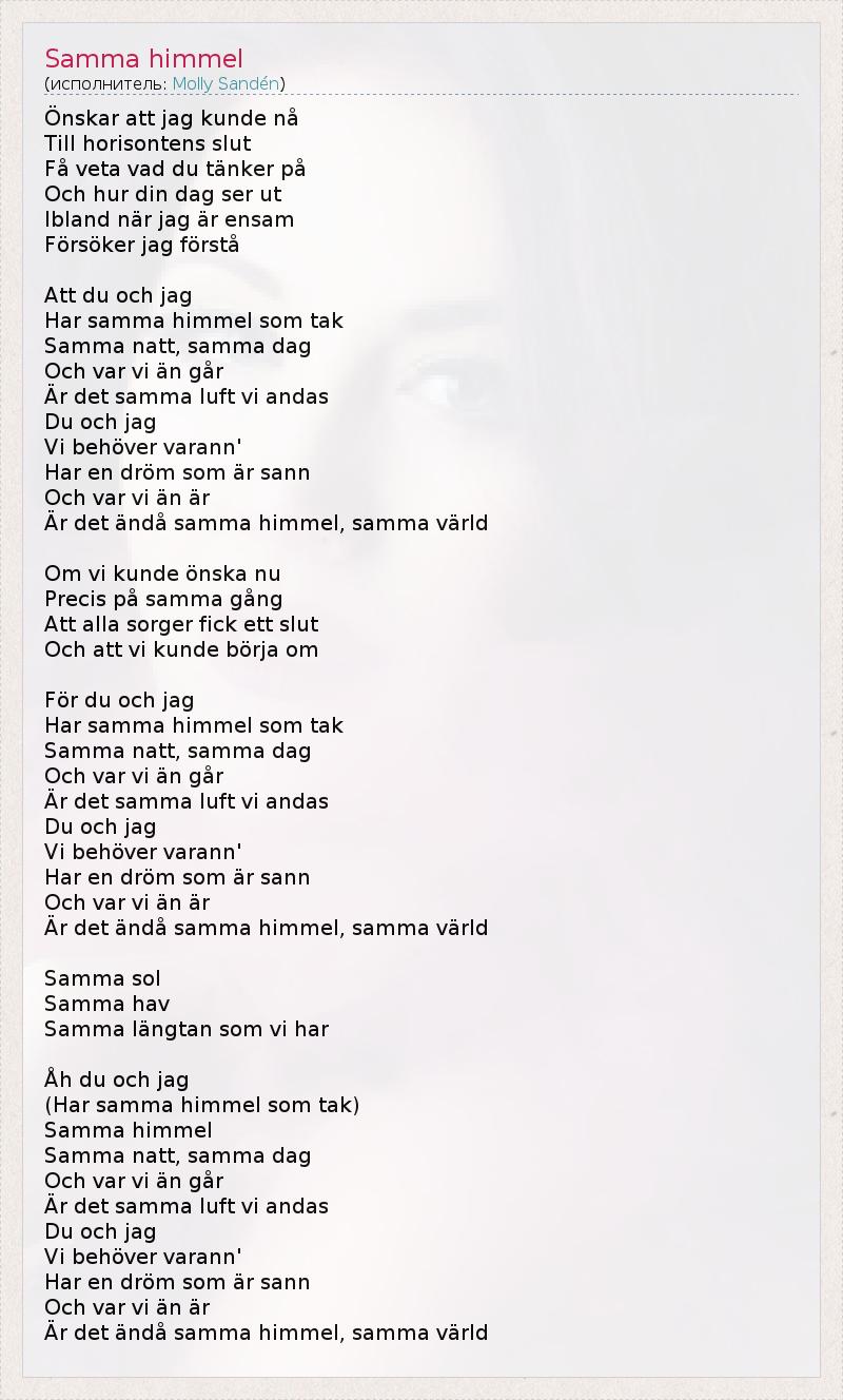 А как ты думаешь, о чем песня "Samma himmel" ?