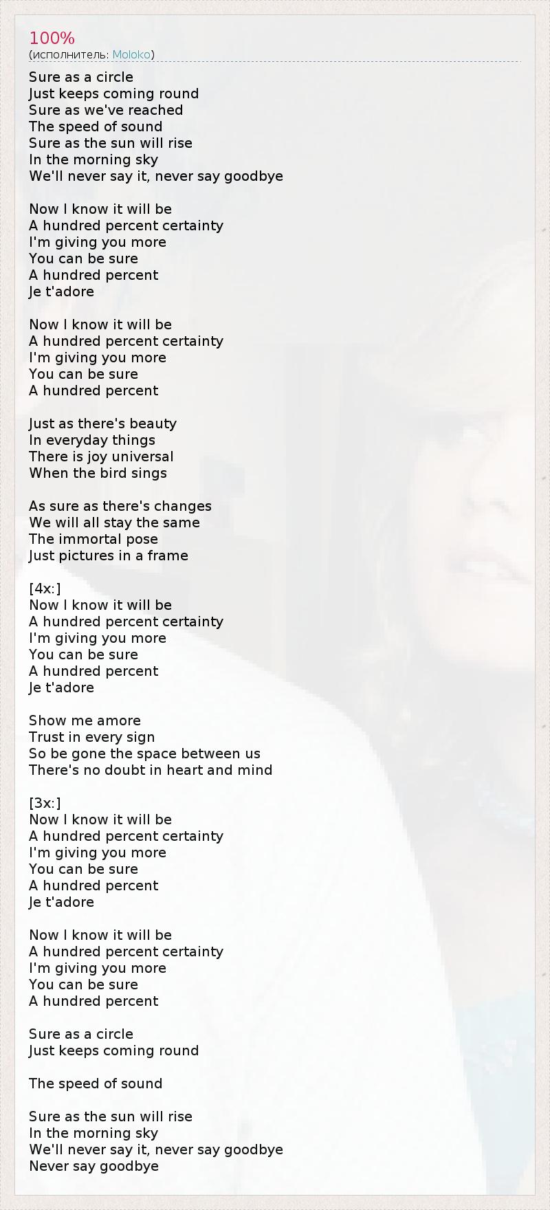 Это интересно:Moloko — британский музыкальный коллектив из Шеффилда, образован в 1994 году, распался в 2006. Состоял из композитора и инструменталиста Марка Брайдона (Mark Brydon) и вокалистки, автора текстов Ройшн Мёрфи (Róisín Murphy).Название группы происходит из сленга "надцатых" из романа "Заводной апельсин" ("A Clockwork Orange"), в котором... продолжение