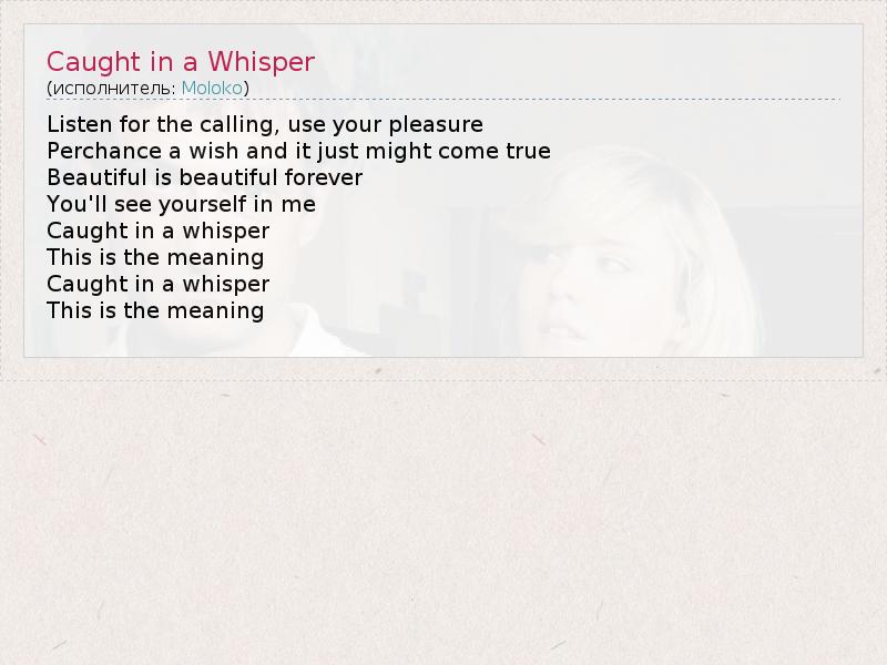 А как ты думаешь, о чем песня "Caught in a Whisper" ?