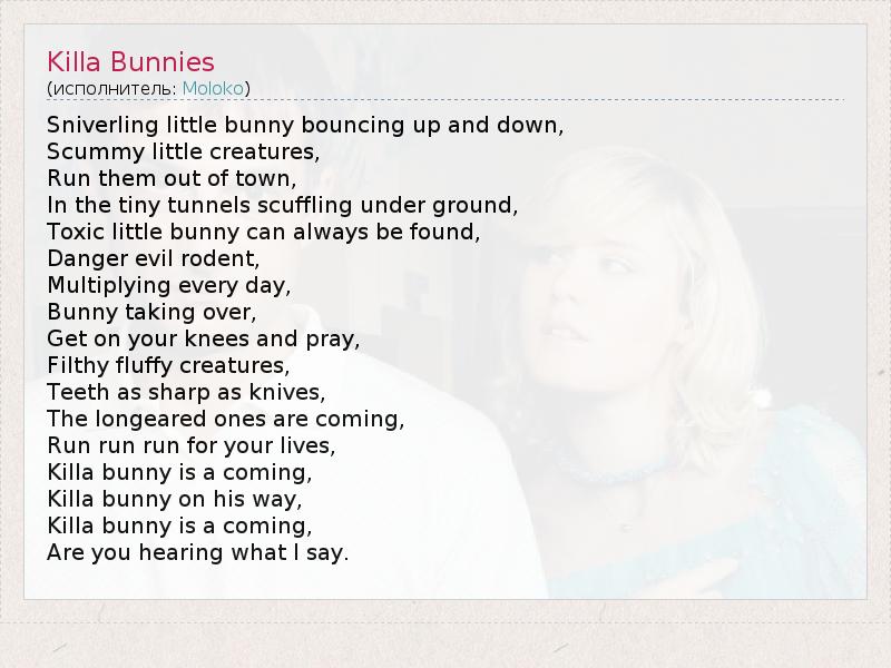 А как ты думаешь, о чем песня "Killa Bunnies" ?