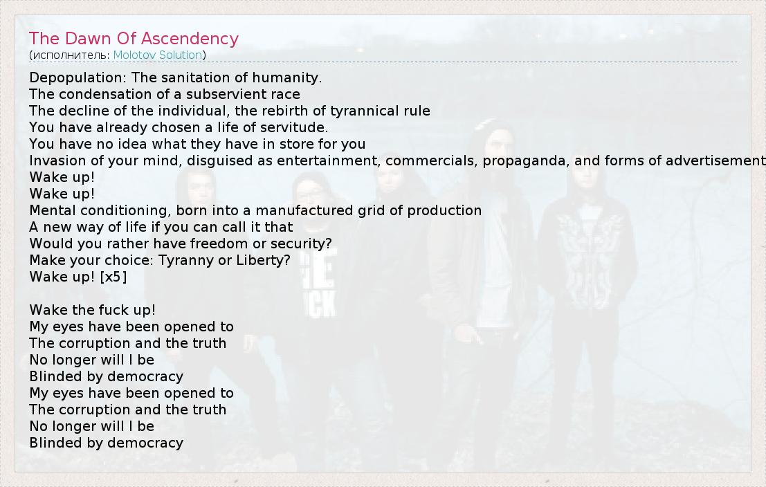 А как ты думаешь, о чем песня "The Dawn Of Ascendency" ?