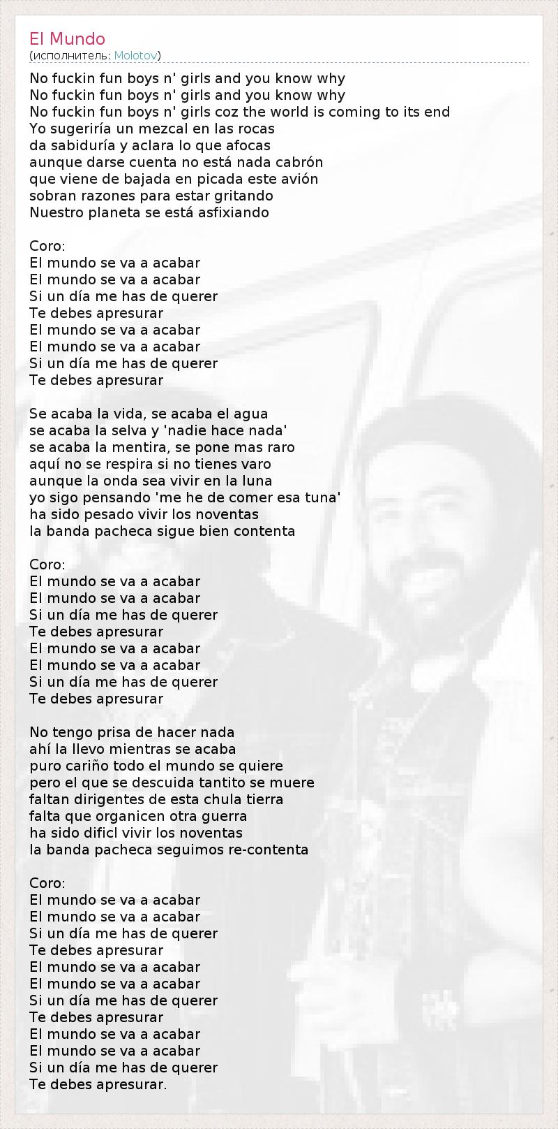 А как ты думаешь, о чем песня "El Mundo" ?
