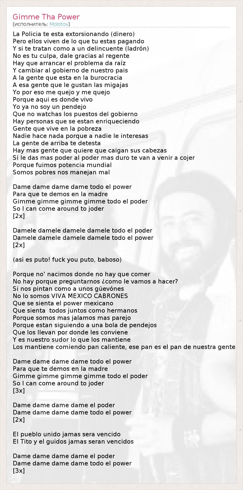 А как ты думаешь, о чем песня "Gimme Tha Power" ?