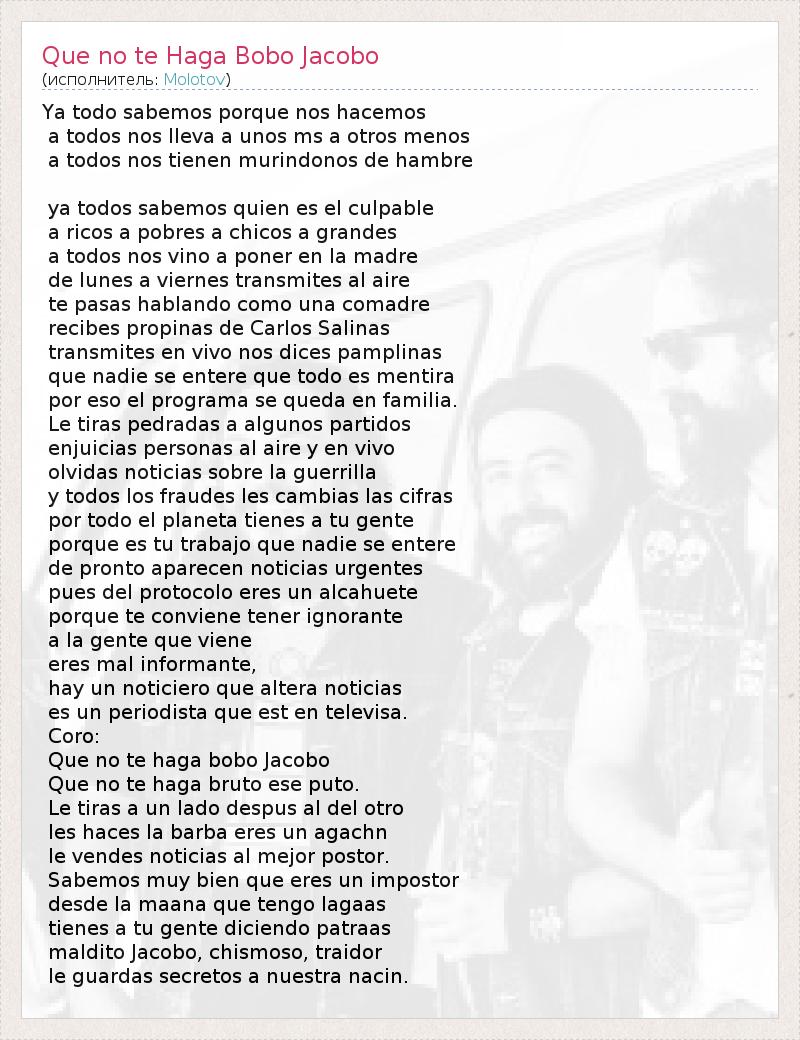 ГлавнаяИсполнителиMolotovQue no te Haga Bobo Jacobo