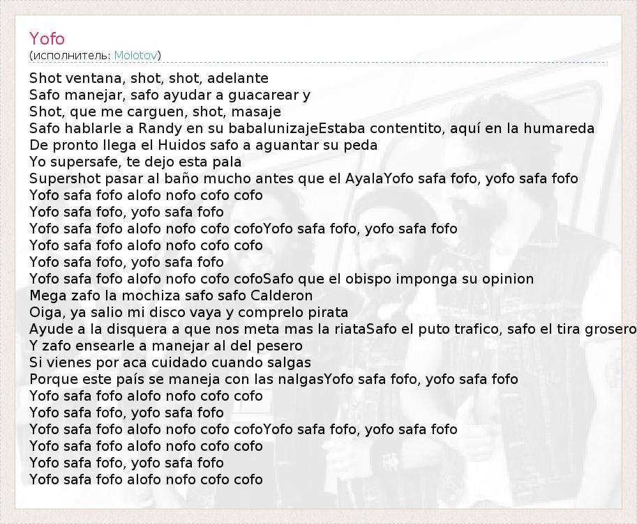 Yofo safa fofo alofo nofo cofo cofoYofo safa fofo, yofo safa fofo