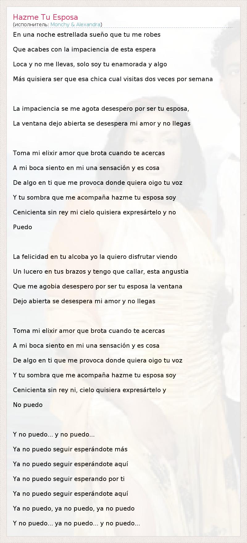 А как ты думаешь, о чем песня "Hazme Tu Esposa" ?
