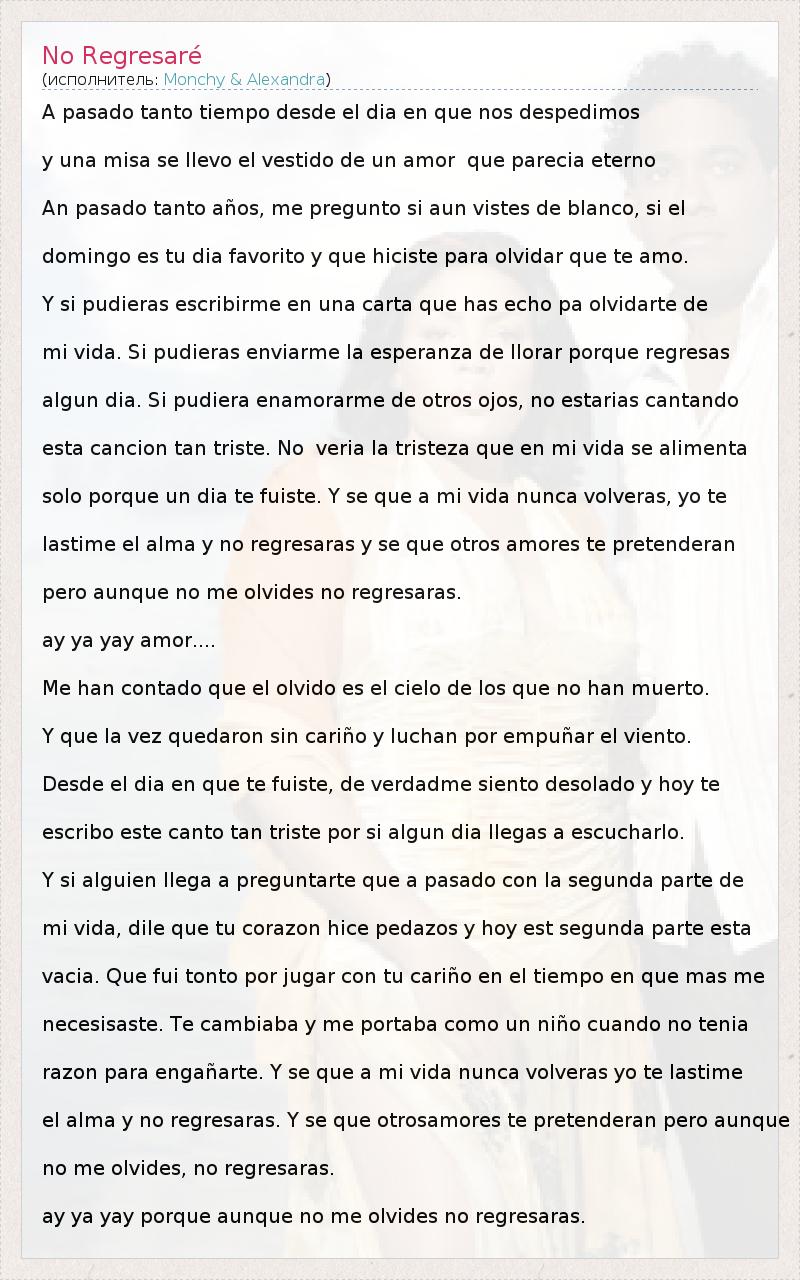 А как ты думаешь, о чем песня "No Regresaré" ?