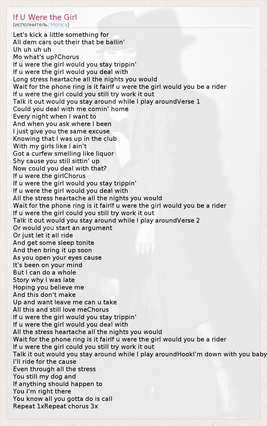 А как ты думаешь, о чем песня "If U Were the Girl" ?