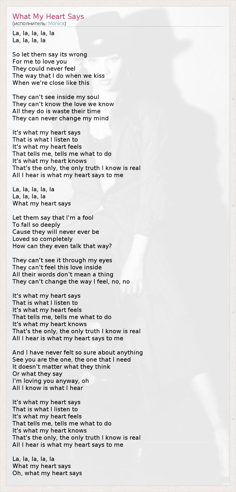 А как ты думаешь, о чем песня "What My Heart Says" ?