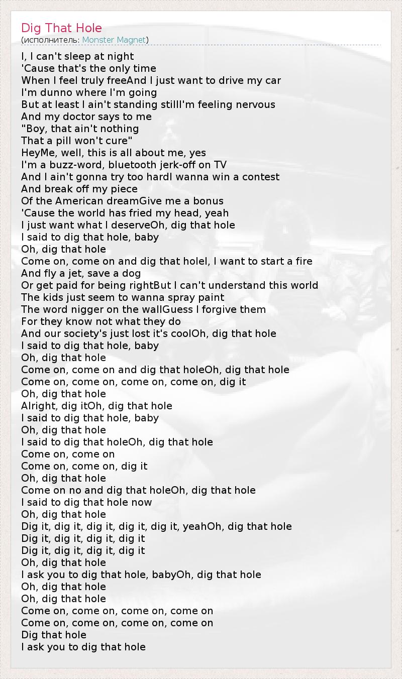 А как ты думаешь, о чем песня "Dig That Hole" ?