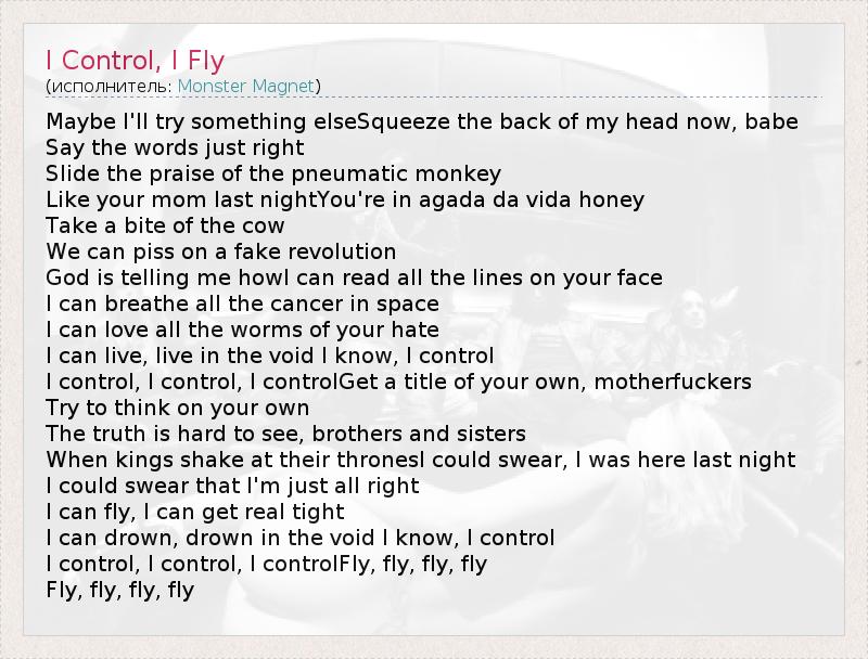 А как ты думаешь, о чем песня "I Control, I Fly" ?