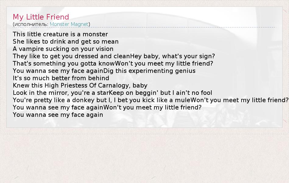 А как ты думаешь, о чем песня "My Little Friend" ?