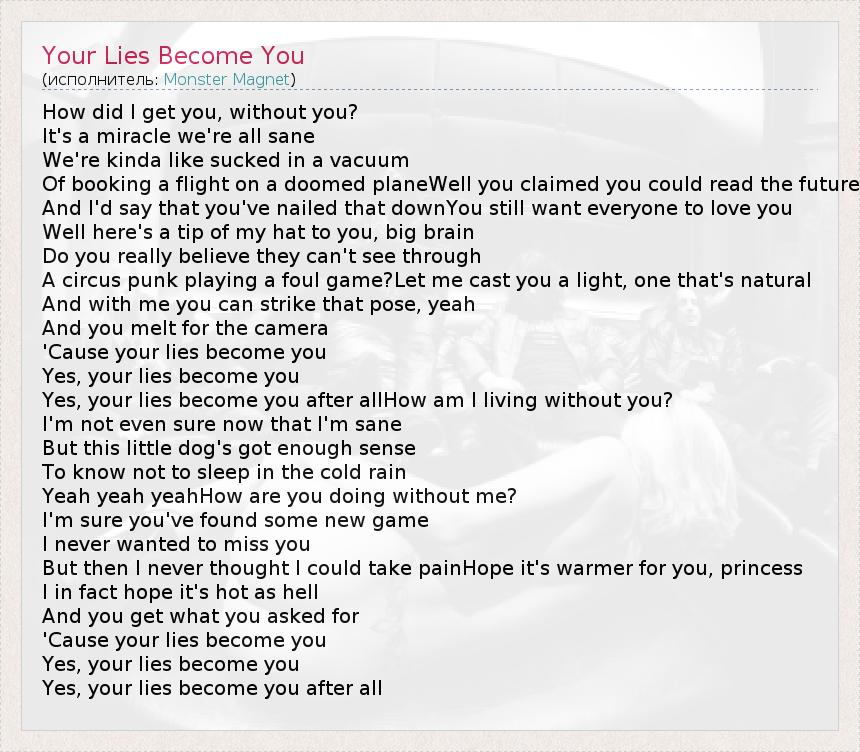 А как ты думаешь, о чем песня "Your Lies Become You" ?