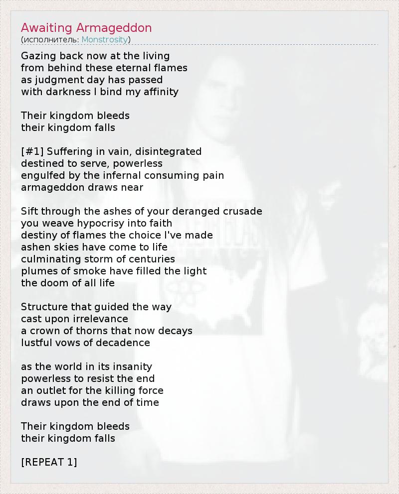 А как ты думаешь, о чем песня "Awaiting Armageddon" ?