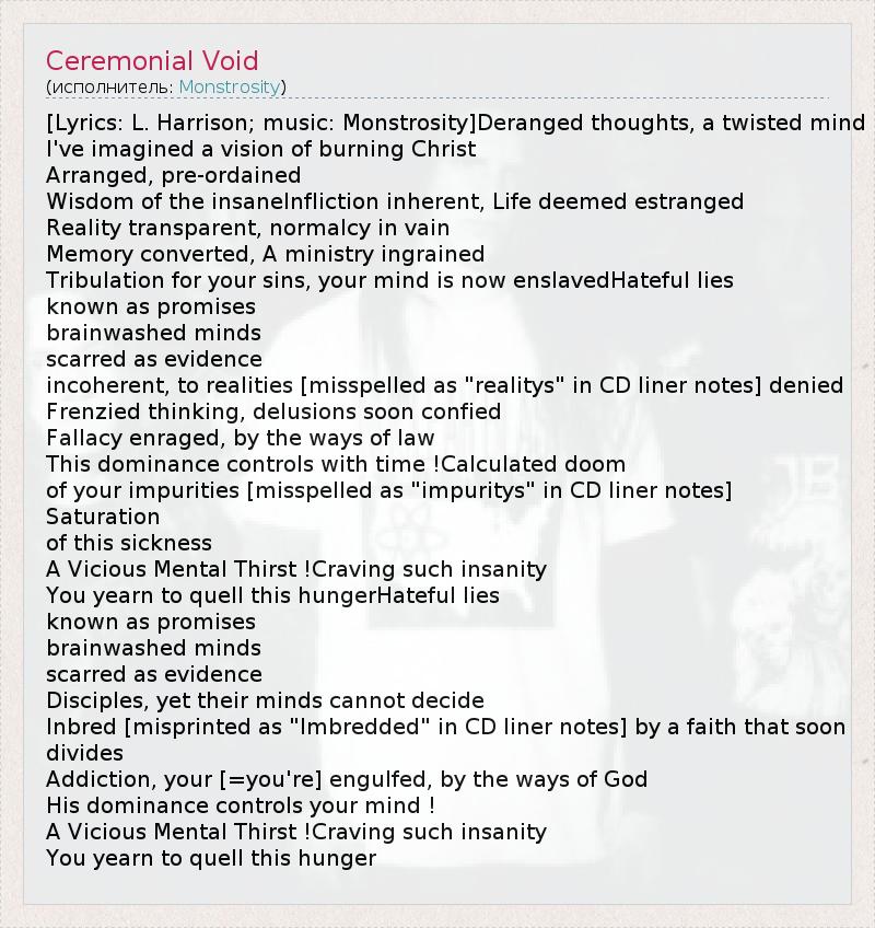 А как ты думаешь, о чем песня "Ceremonial Void" ?