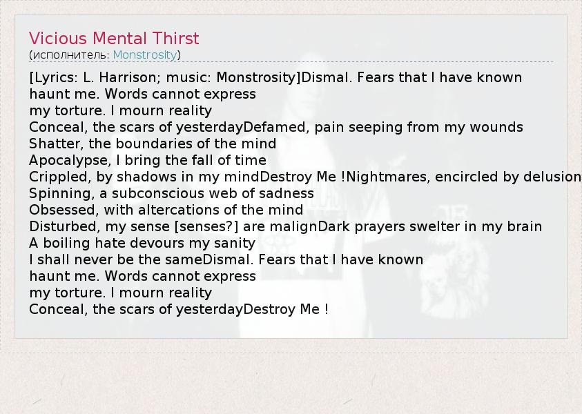 А как ты думаешь, о чем песня "Vicious Mental Thirst" ?