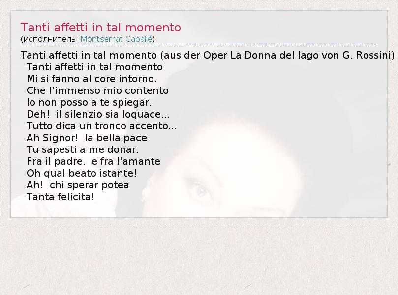 А как ты думаешь, о чем песня "Tanti affetti in tal momento" ?