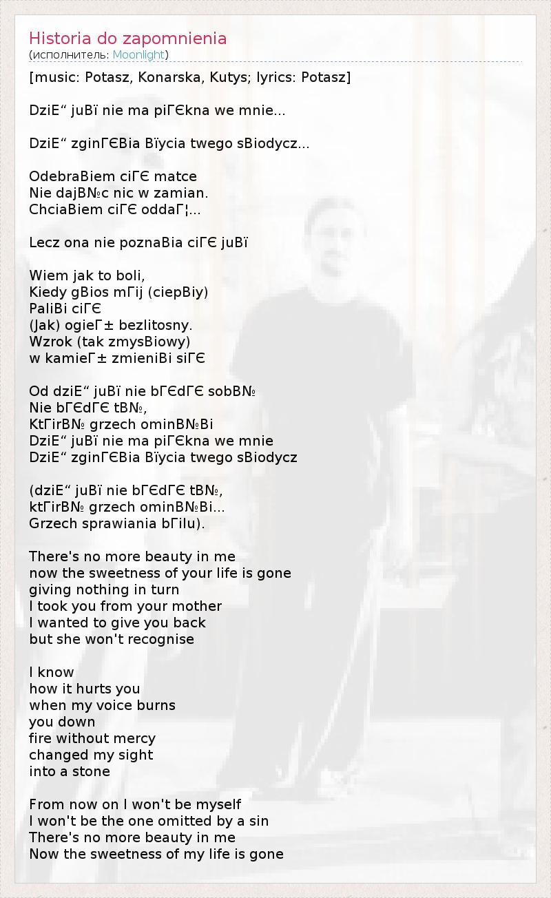 ГлавнаяИсполнителиMoonlightHistoria do zapomnienia
