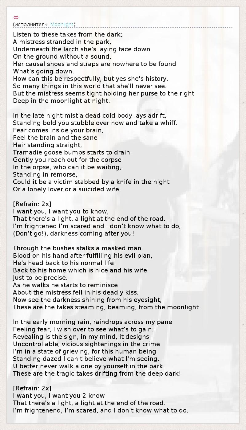 Это интересно:C таким названием есть ещё команда из Мексики (официально уже split-up), играющая Black Metal с 1999. Темы их текстов: оккультизм, сатанизм.Дискография:The Fallen(Demo) 2003The Last Winter(Demo) 2005Legis Scelestus(Demo) 2006Evocation 2008Rex Diabolos 2010Lucifer's Rising 2012Поиски своего лица в плане музыки и общей концепции звучания начались у Moonlight ещё в 1991 году. В 1992 году они сделали первую демо-запись. Материал был встречен... продолжение