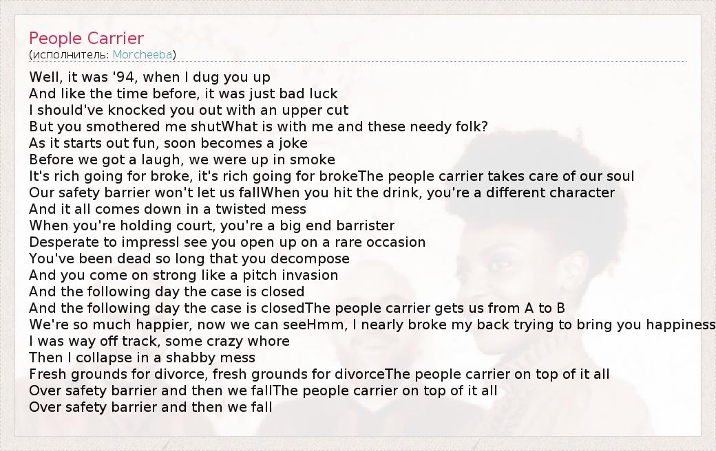 А как ты думаешь, о чем песня "People Carrier" ?