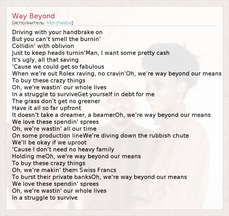 А как ты думаешь, о чем песня "Way Beyond" ?