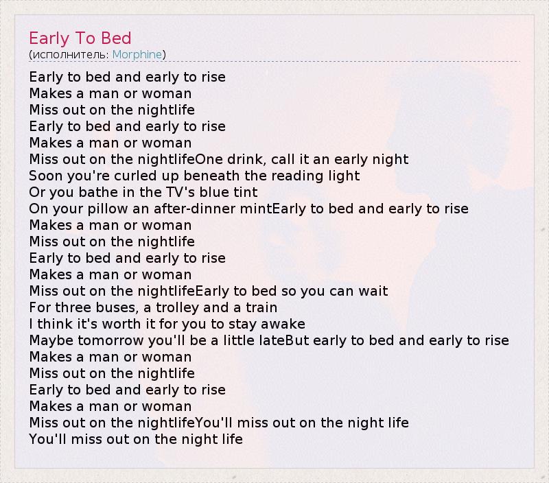 А как ты думаешь, о чем песня "Early To Bed" ?