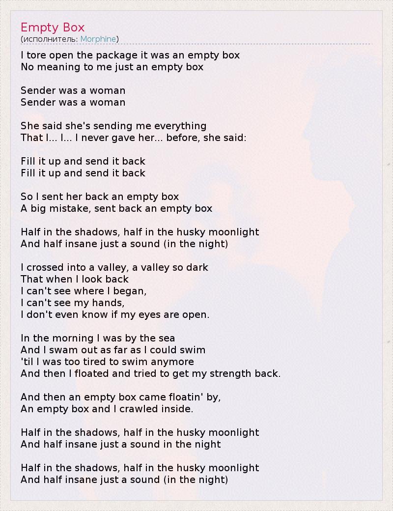 А как ты думаешь, о чем песня "Empty Box" ?