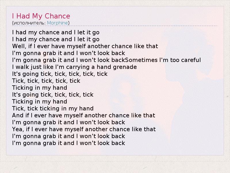 А как ты думаешь, о чем песня "I Had My Chance" ?