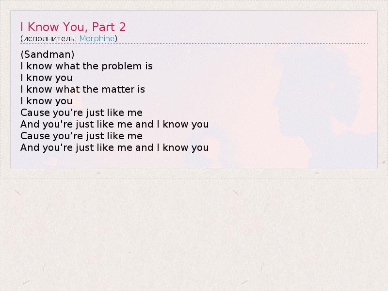 А как ты думаешь, о чем песня "I Know You, Part 2" ?