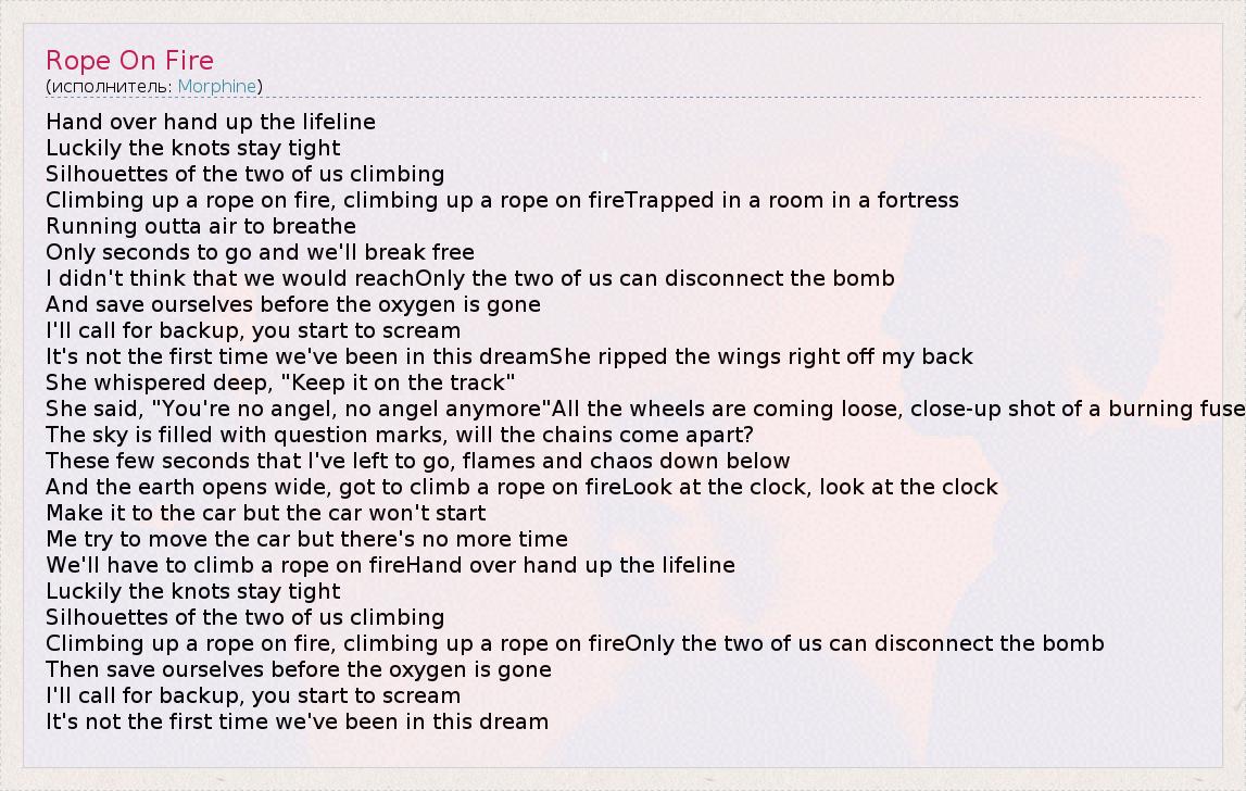 А как ты думаешь, о чем песня "Rope On Fire" ?