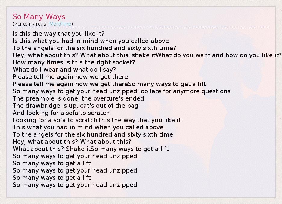 А как ты думаешь, о чем песня "So Many Ways" ?