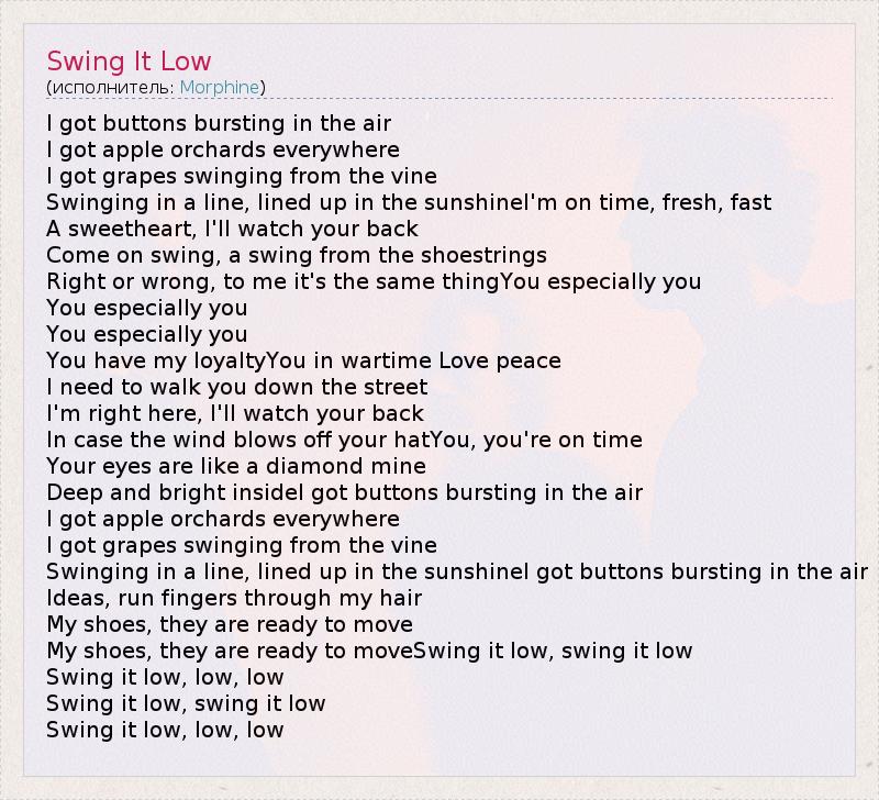 А как ты думаешь, о чем песня "Swing It Low" ?