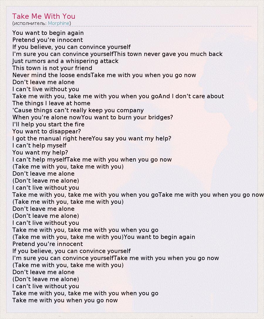 Take me with you, take me with you when you goTake me with you when you go now