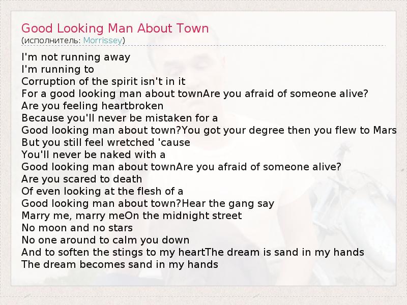 А как ты думаешь, о чем песня "Good Looking Man About Town" ?